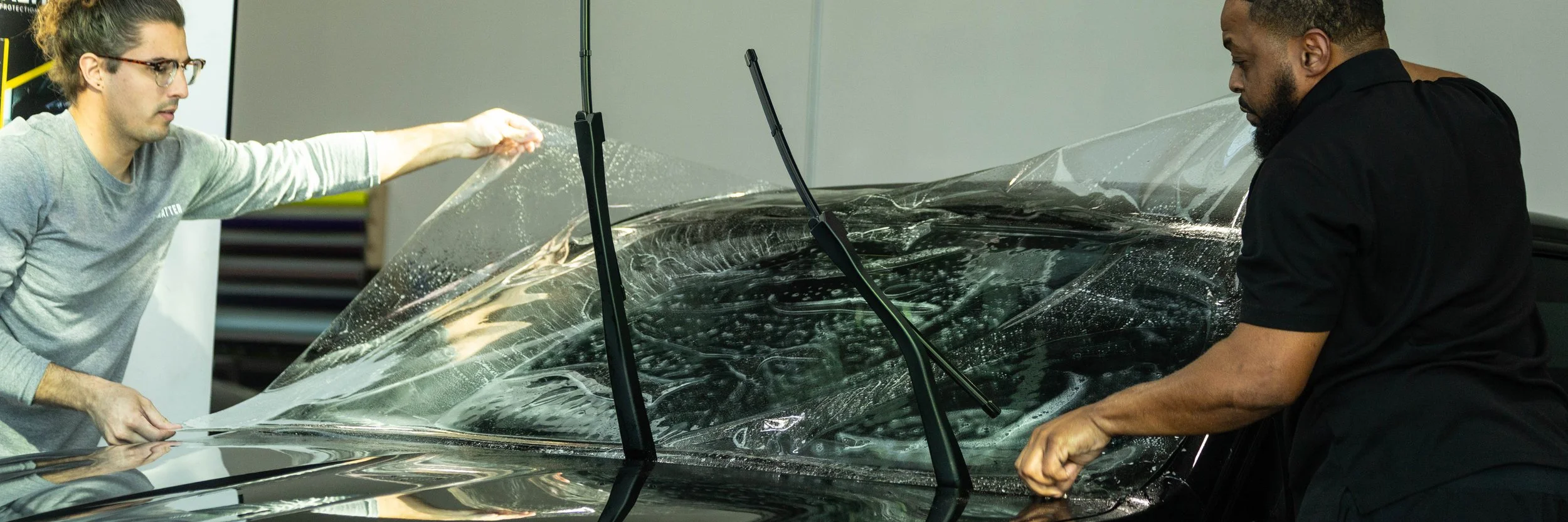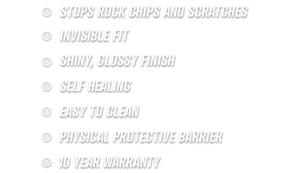 Stop cracks and chips in your windshield before they even happen! Unlike window tint, this protection film goes on the outside of your windshield for maximum glass protection.